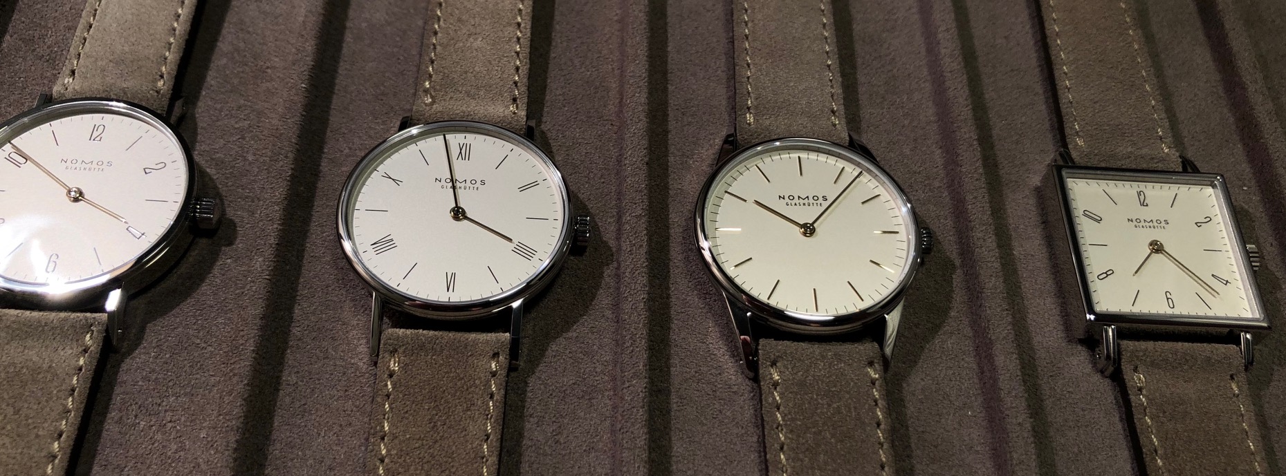 Next is the duo, two hand watch. 33mm and 27.5mm square. The Nomos watches.