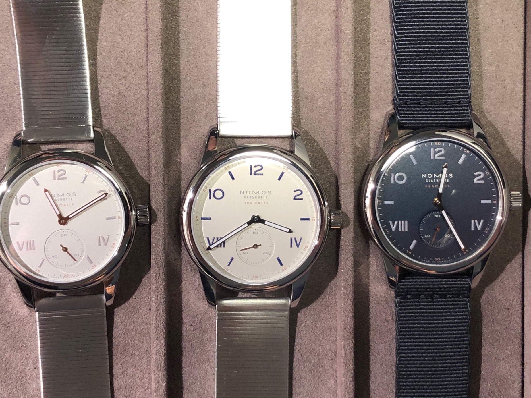 First is the Sport Collection with 3 watches. From L-R: Tangente Sport neomatik 42 Date in a white dial, same in Marine Black and the Club Sport neomatik 42 Date Black.