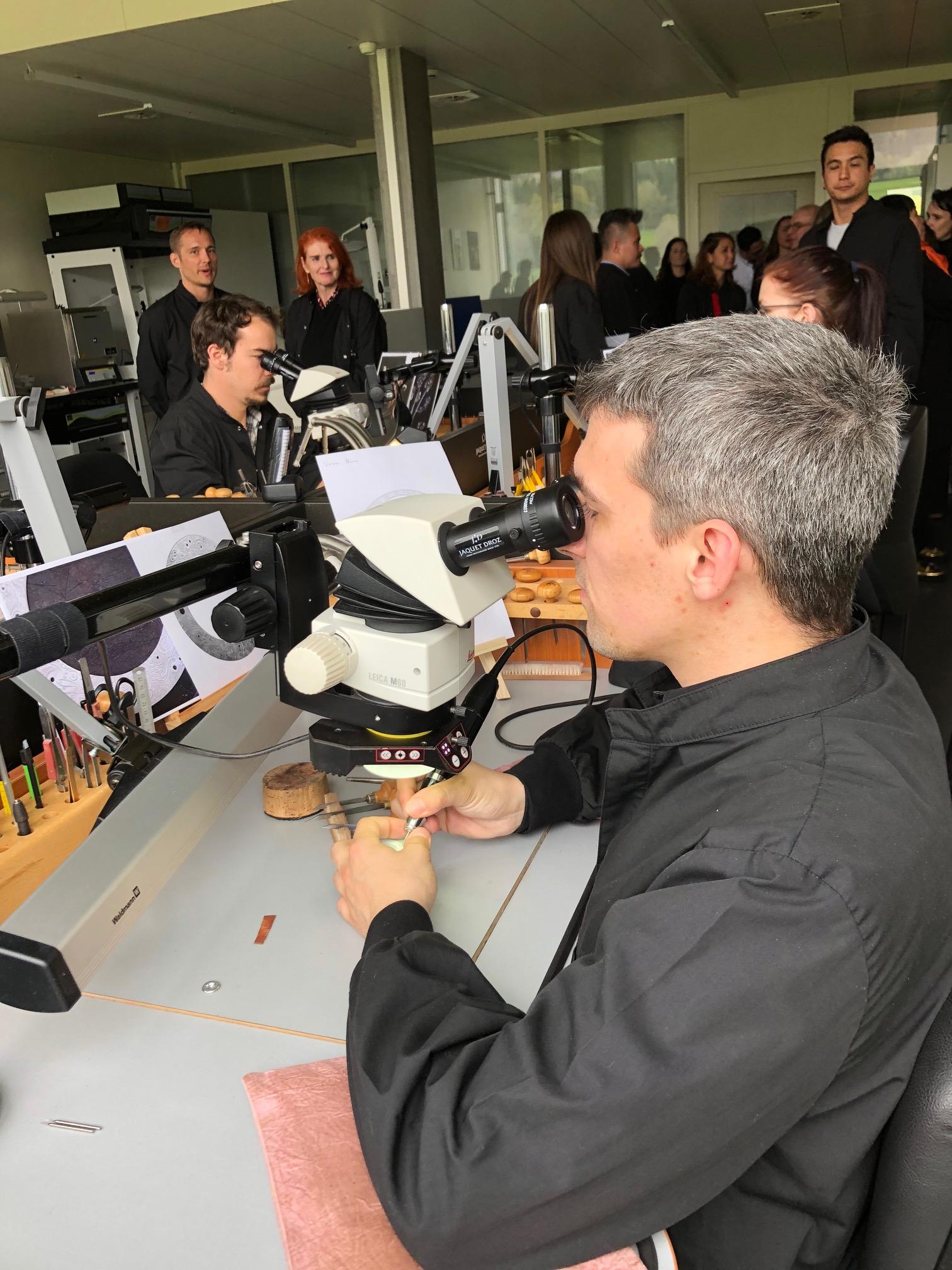 Next we visited the Design Studio. No photographs in this room. We saw how the designs come to live. All watches are drawn in this department, including technical, design and craftsmanship. We saw the design of the tiger on the Petit Heuer Minute being drawn by hand using colour pencils of many shades. This is a special commission. The craftsman proposes several tiger drawings based on the request for a tiger on the watch.