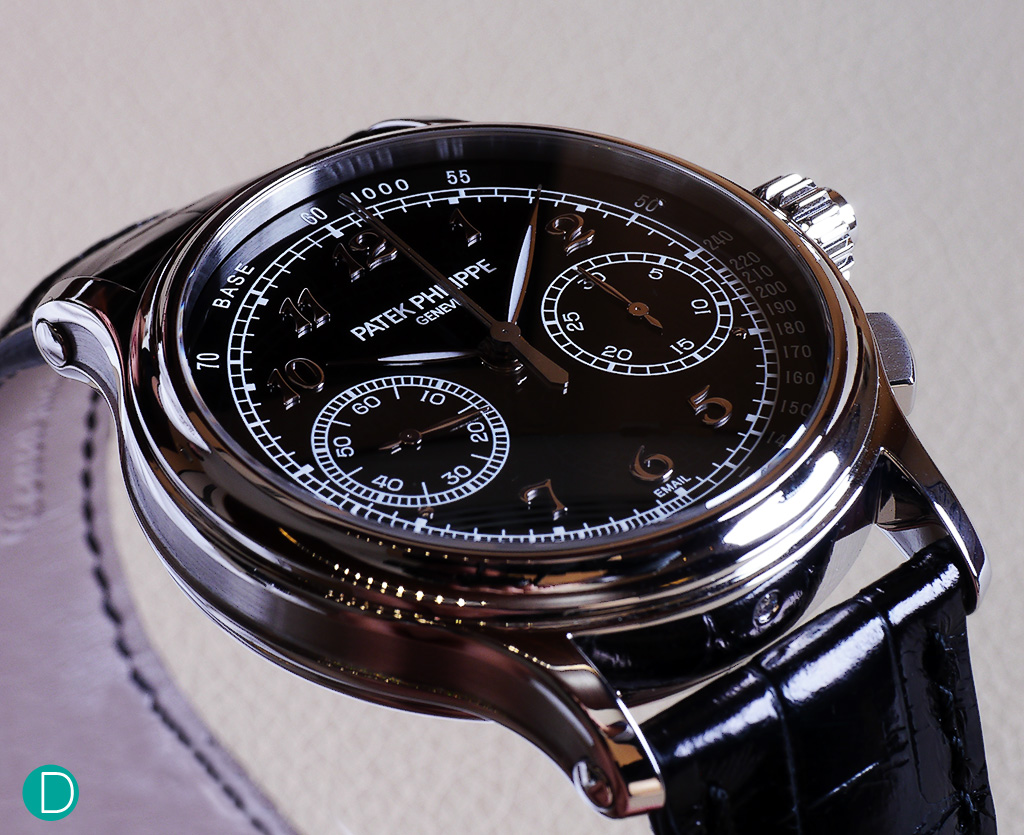 When we first saw the Reference 5370, our hearts immediately skipped a bit. The combination of a black enamel grand feu dial, a classic dual register split seconds single button chronograph, the Breguet numerals, as well as the beautiful platinum case make this timepiece a rather tantalizing prospect indeed.